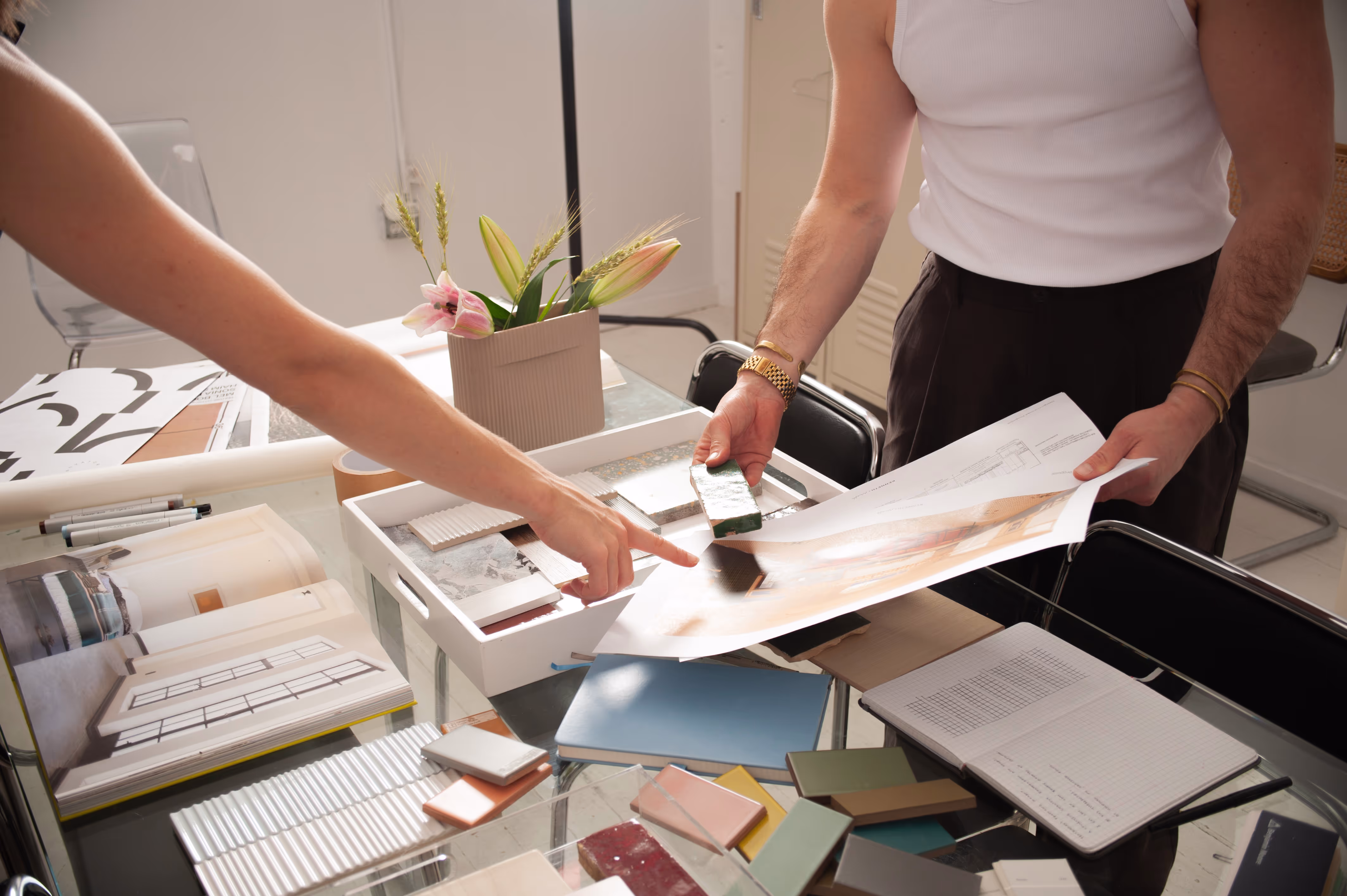Founded in Brooklyn, NY, Kenneth & Noelle is a research and design collective rooted in the pursuit of balance and wellness within the built environment. Led by Dylan Roberts and Kaelee Helms—who met on their first day of graduate school at Pratt Institute in 2019—the collective explores the subtle relationships between structure, perception, and human well-being.